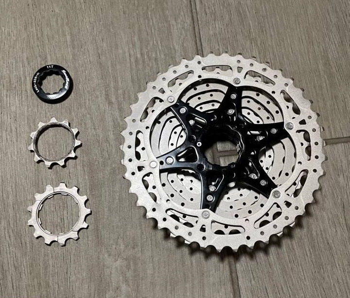 – Sunrace CSMS3 11-42 fogas sor HG kazettatestre, 10 sebességes kivitelben (a képeken nem látszik egy távtartó, de jár mellé);